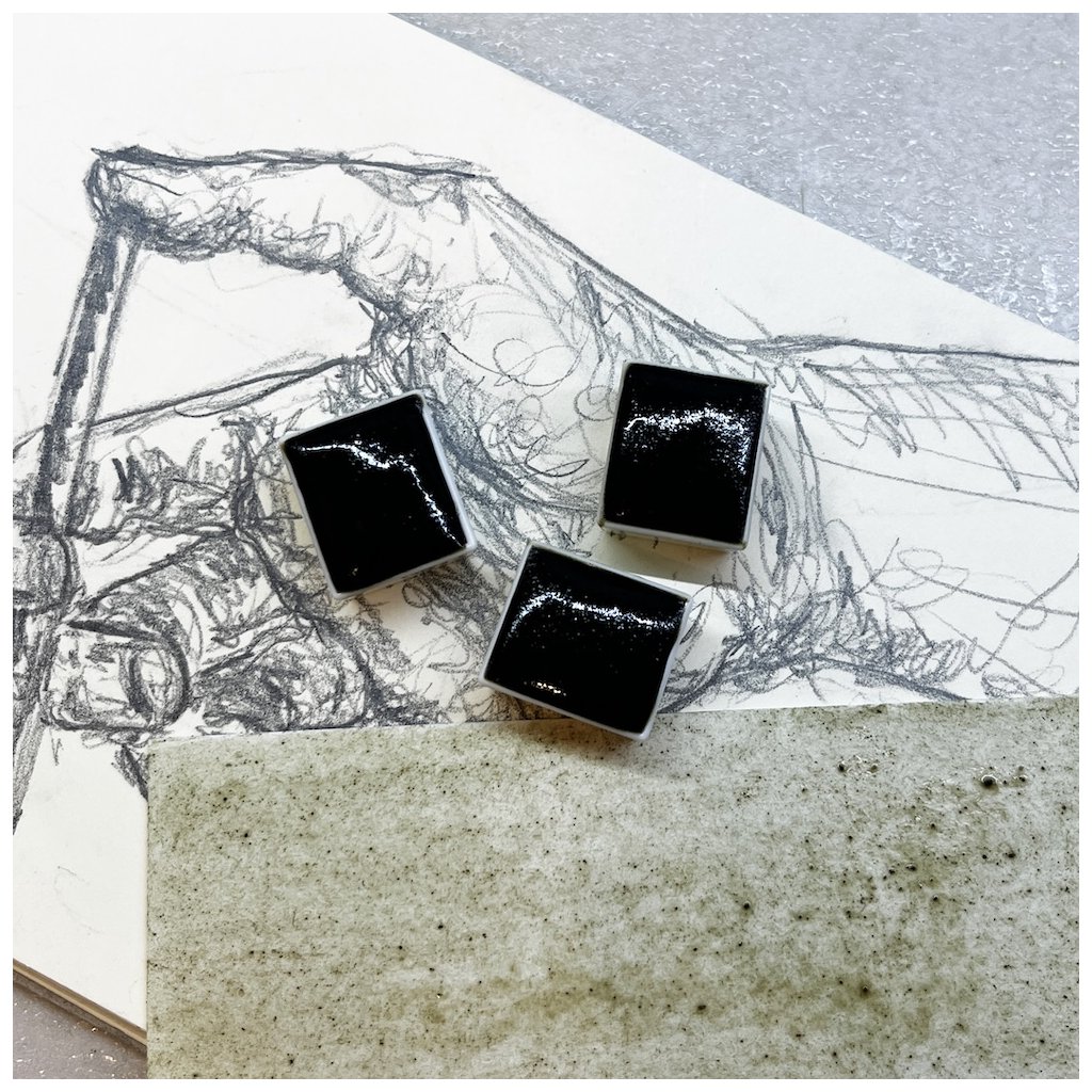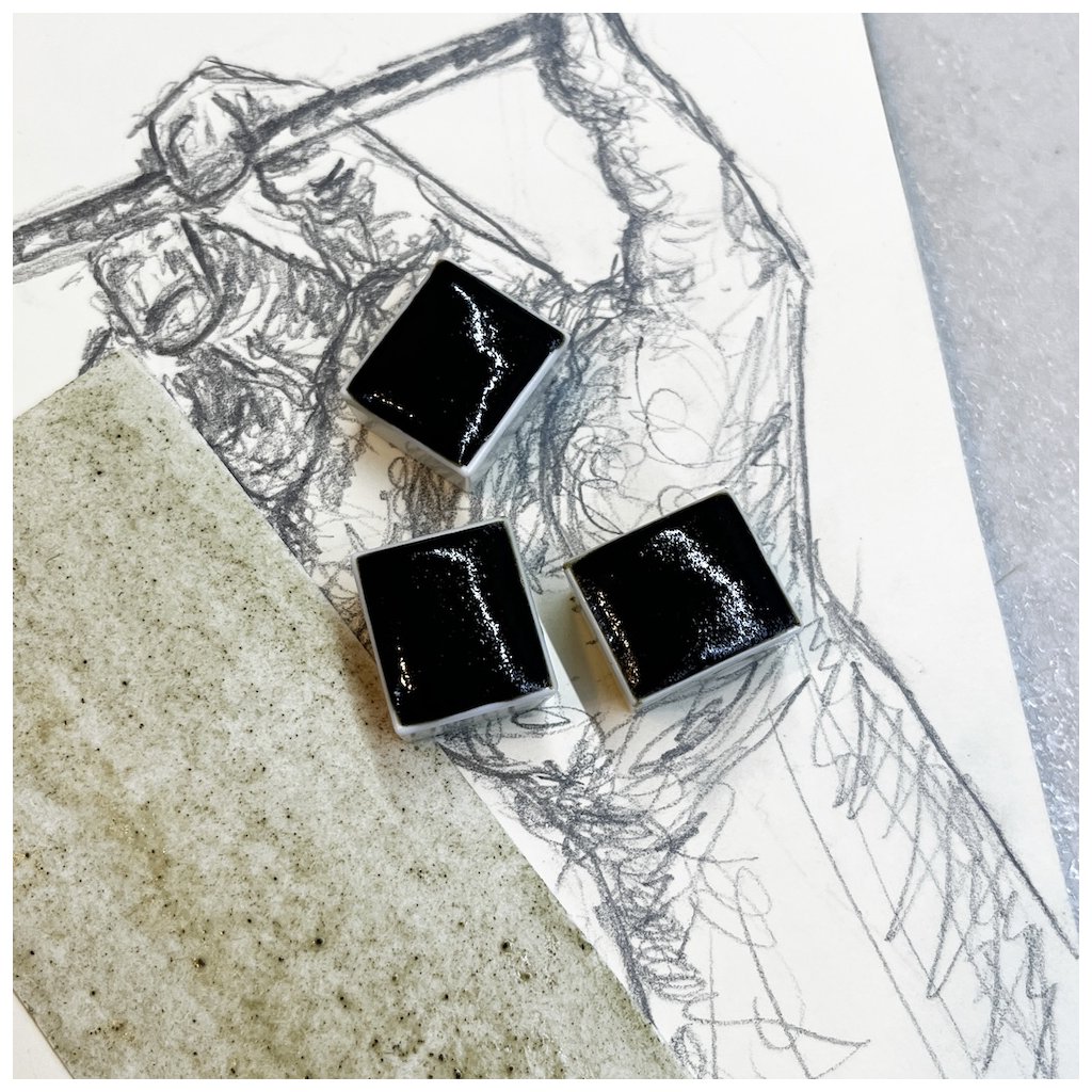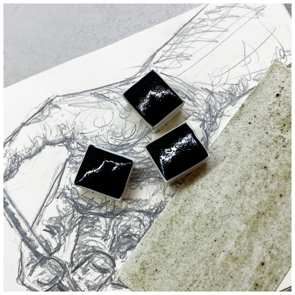 Ručně vyrobená akvarelová barva z přírodního pigmentu v půlpánvičce.