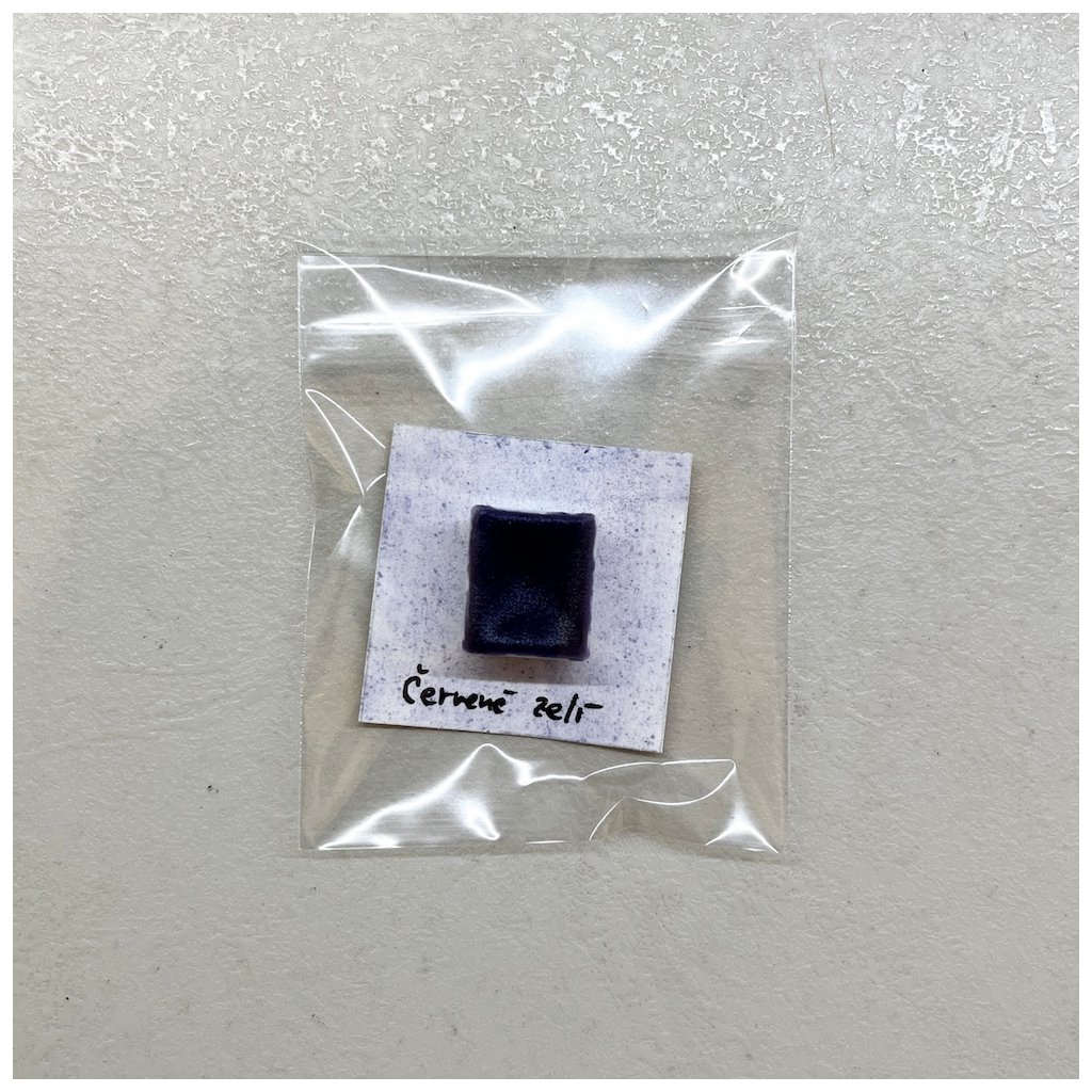 Ručně vyrobená akvarelová barva z přírodního pigmentu v půlpánvičce.