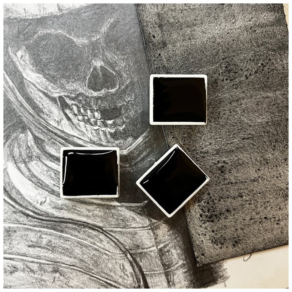 Ručně vyrobená akvarelová barva z přírodního pigmentu v půlpánvičce.