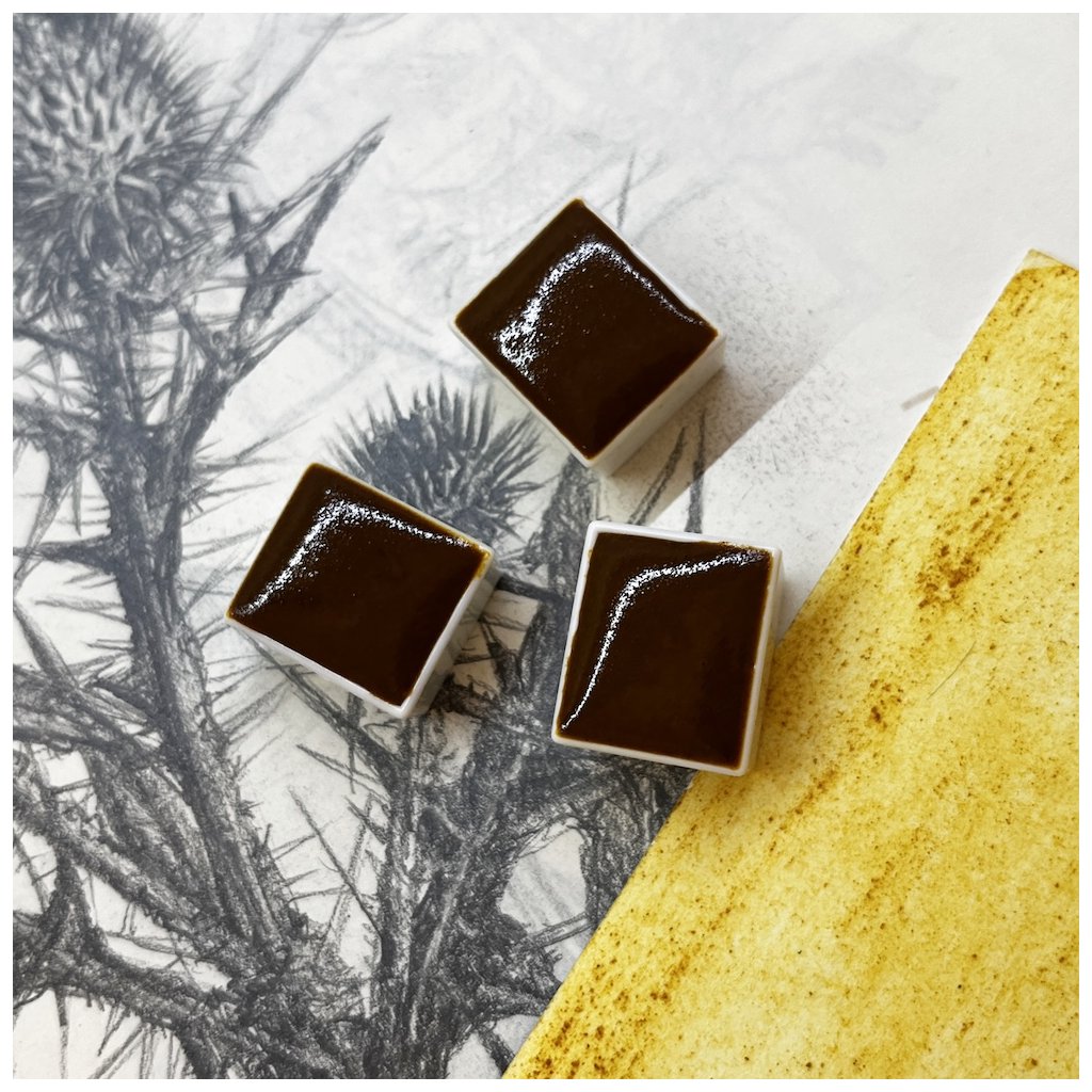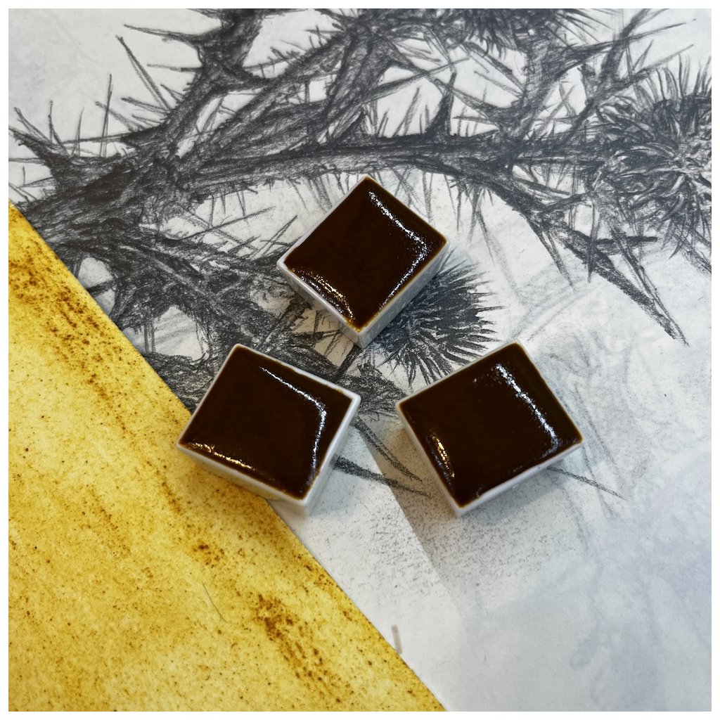 Ručně vyrobená akvarelová barva z přírodního pigmentu v půlpánvičce.