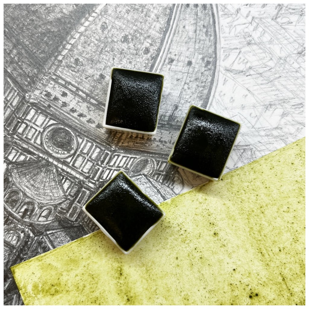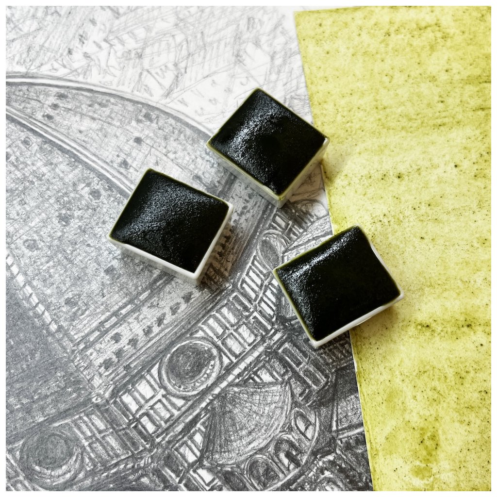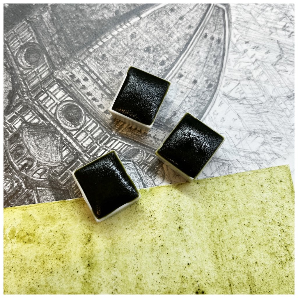 Ručně vyrobená akvarelová barva z přírodního pigmentu v půlpánvičce.